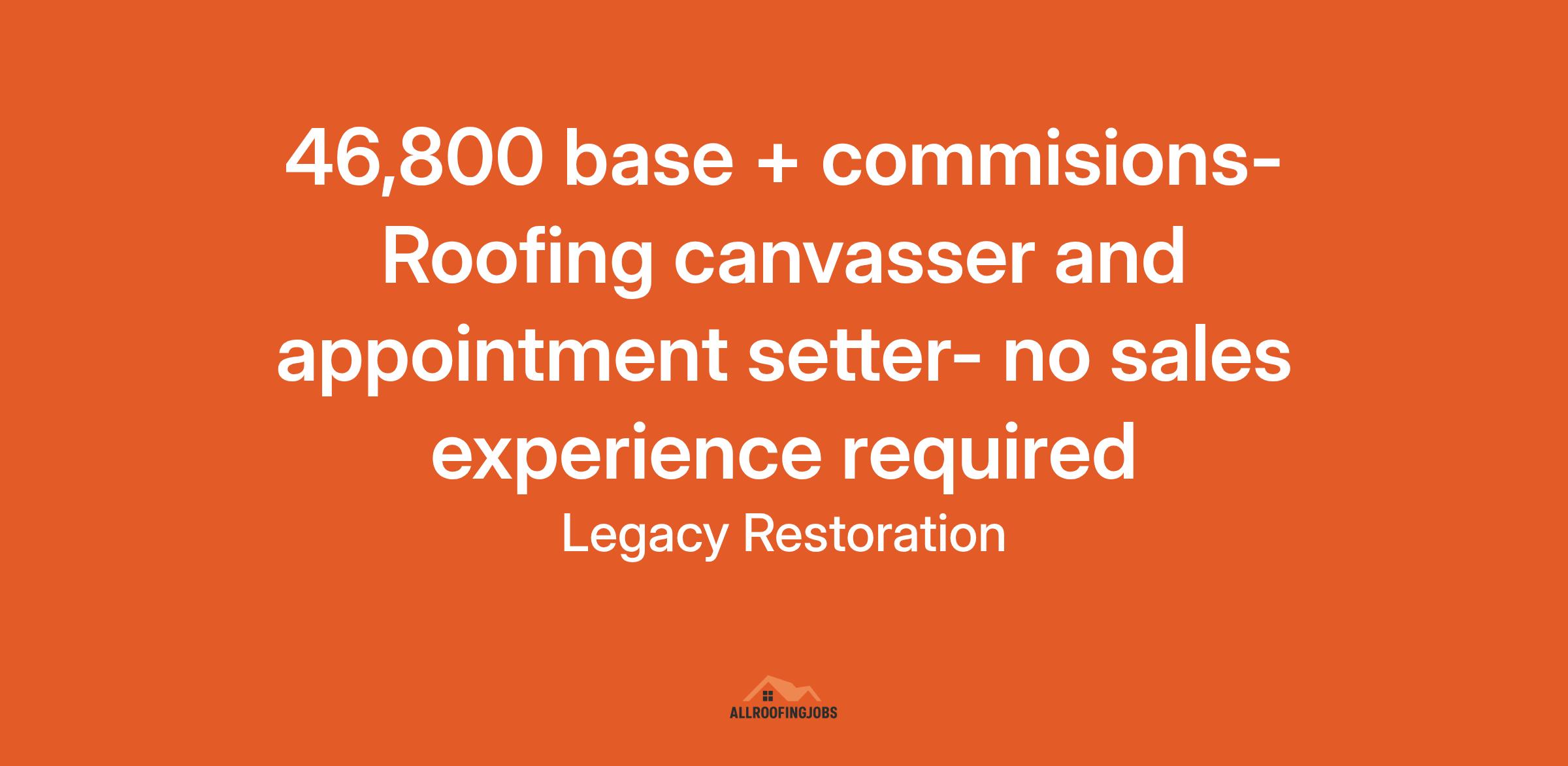 At Legacy Restoration, we value individual contributions and teamwork, and we are committed to providing the highest quality products and exceptional service to our customers. If you're a self-motivated individual who thrives in a fast-paced, positive environment and enjoys uncapped earning potential, we encourage you to apply for this exciting opportunity. Please submit your resume for consideration.