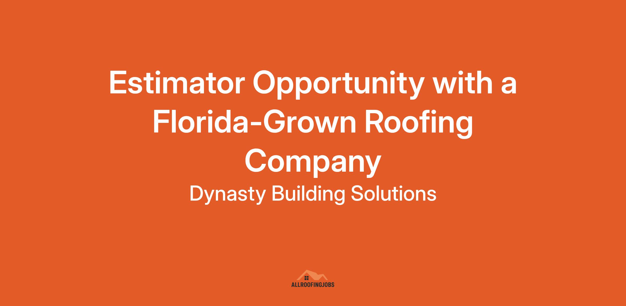Estimator Opportunity with a Florida-Grown Roofing Company