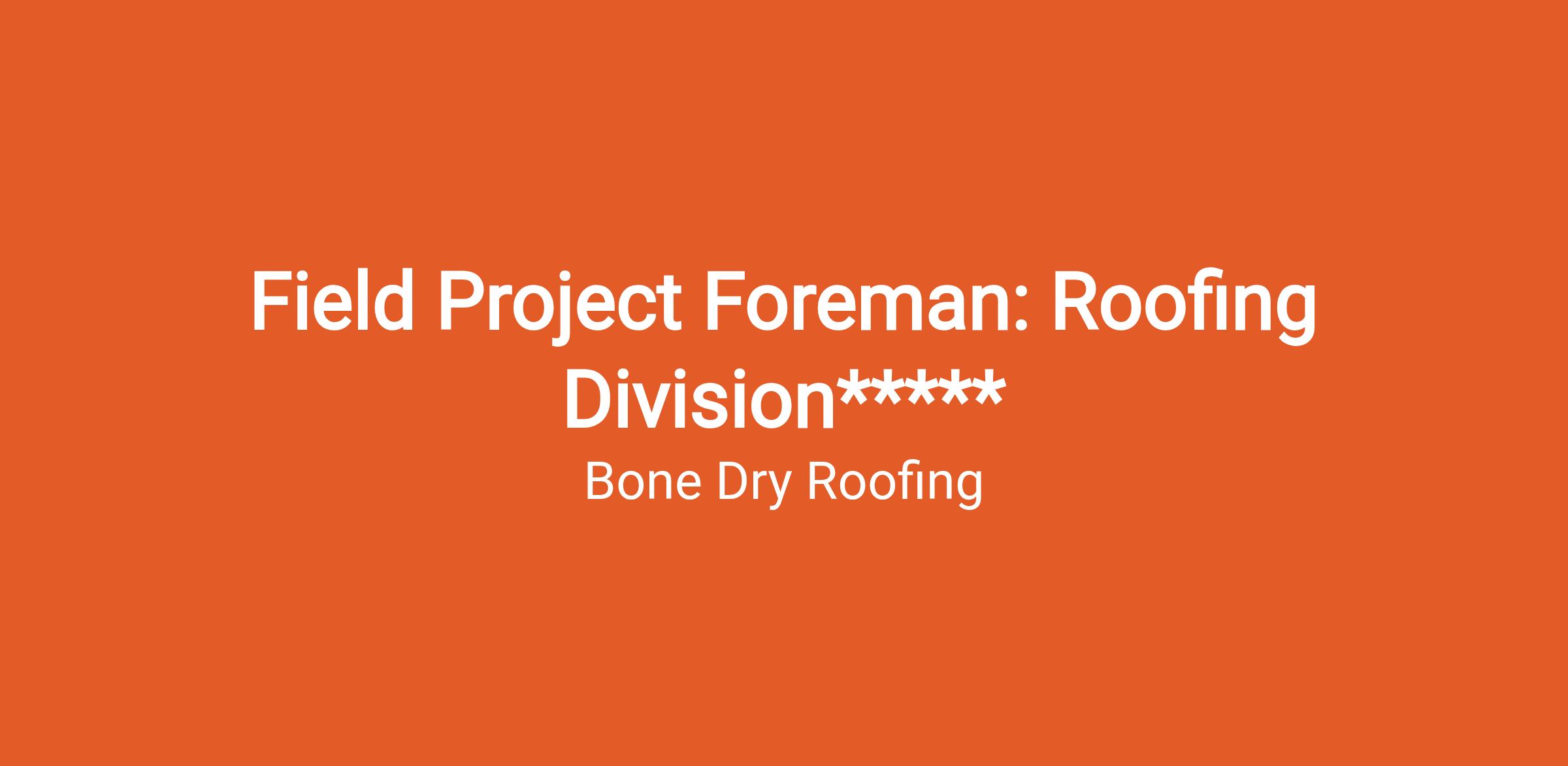 Come join our team in Fort Collins! Our Field Project Foremen provides exceptional service to the Bone Dry customers in the Fort Collins area and completes a variety of jobs such as roofing rebuilds and roofing repairs. Work trucks and fuel will be provided by Bone Dry. Our pay structure is commission based, where you will earn a percentage of the projects you complete.
