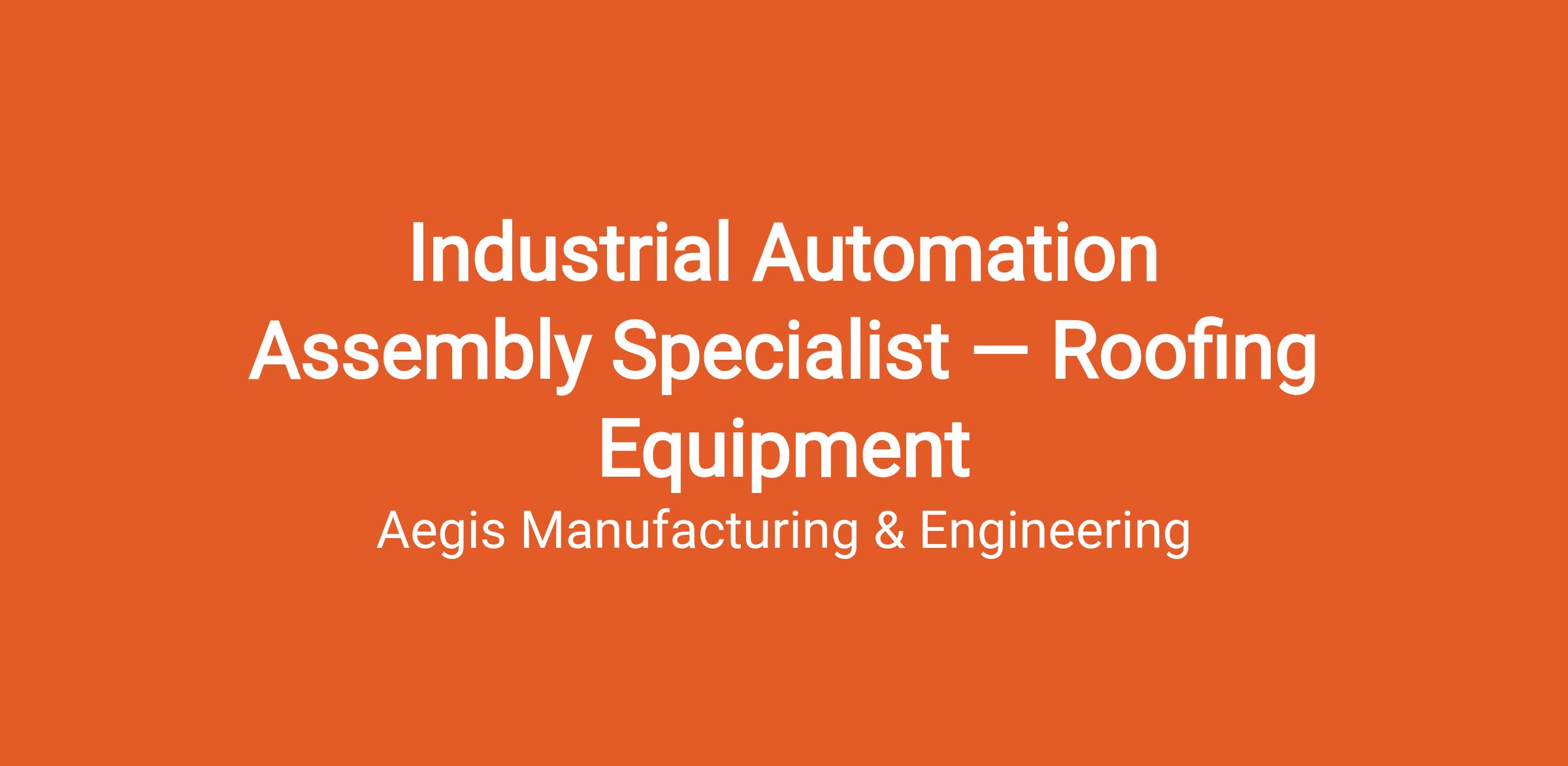 Industrial Automation Assembly Specialist — Roofing Equipment