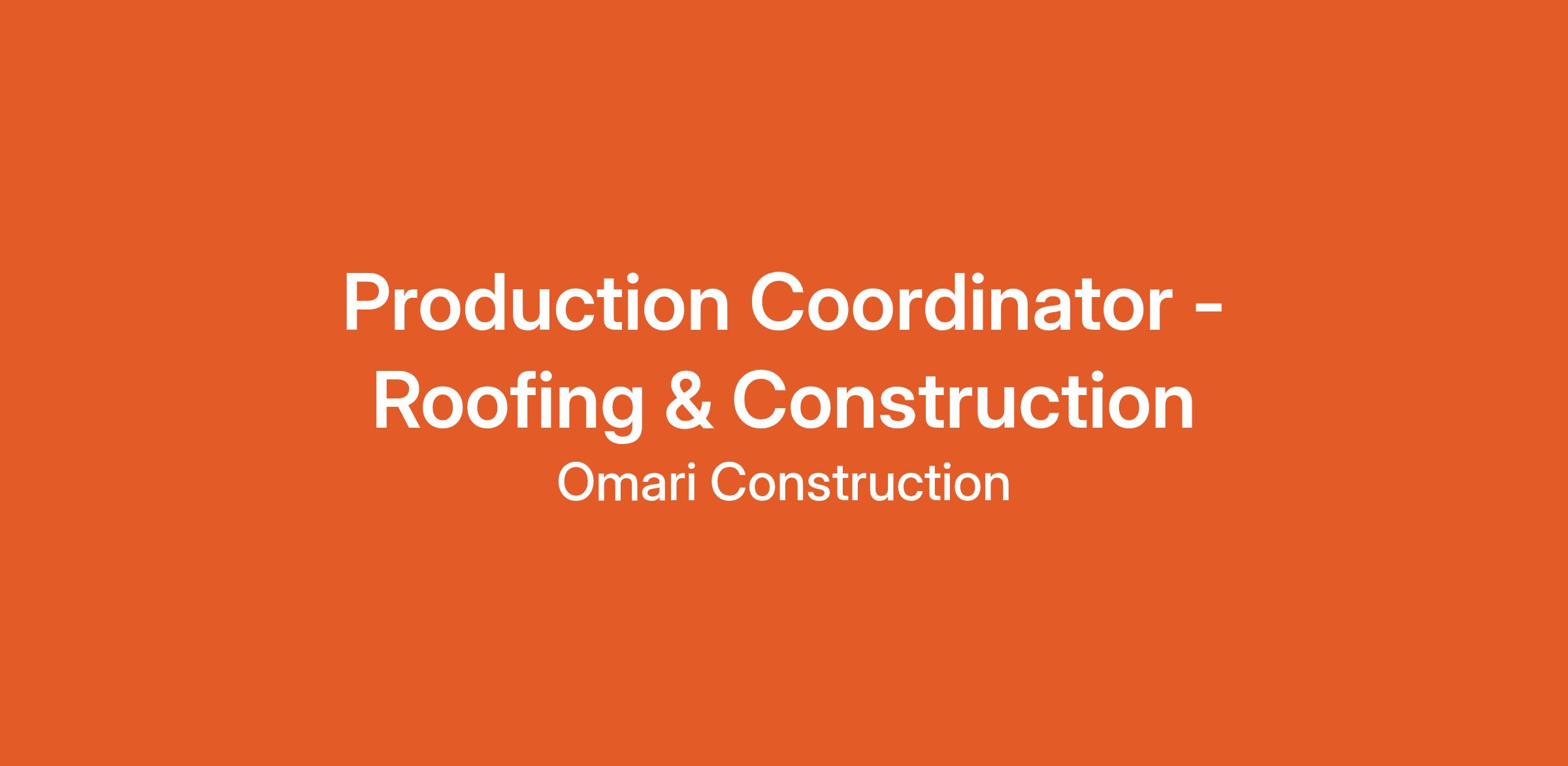 Omari Construction is a fast-growing, multi-state roofing and construction company specializing in insurance restoration, residential roofing, and multi-family projects. We are looking for a reliable, detail-oriented Production Coordinator to support our operations team and ensure jobs move smoothly from contract approval to installation. This position requires strong communication, accuracy, and the ability to manage multiple tasks at once.