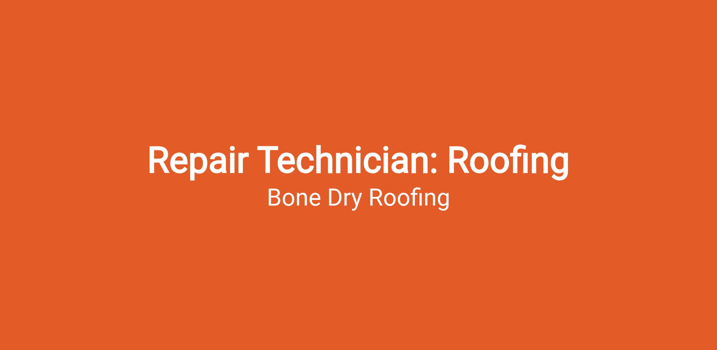 Join a great company! Our Roofing Repair Technicians complete a variety of roofing jobs for Bone Dry Roofing customers, all while providing exceptional service. Here at Bone Dry we also believe in setting our technicians up for success with training opportunities, and incredible support. Work trucks, fuel, and phones will be provided by Bone Dry Roofing. Our compensation is salary based plus commission. WE WILL TRAIN!