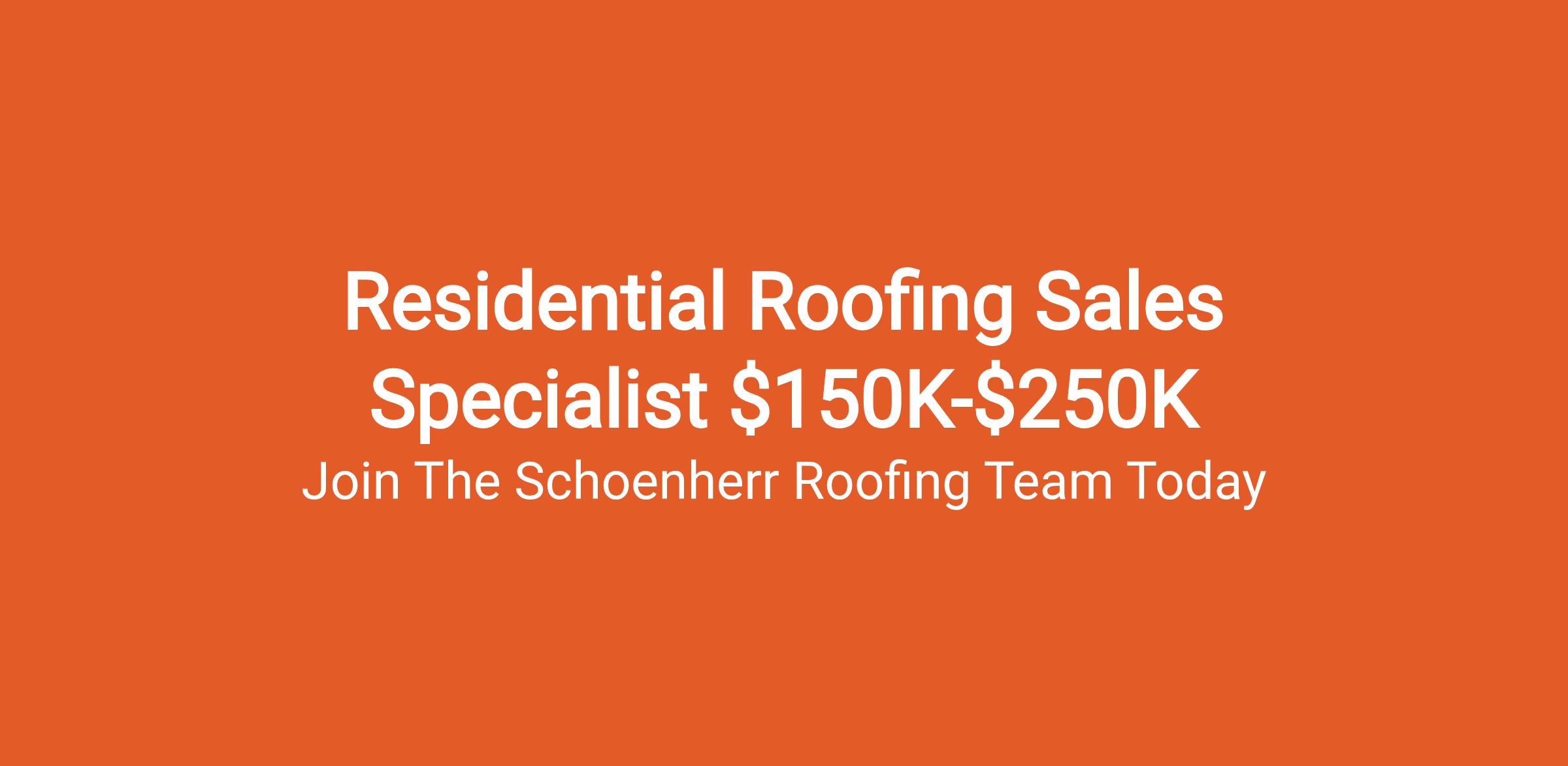 Residential Roofing Sales Specialist $150K-$250K