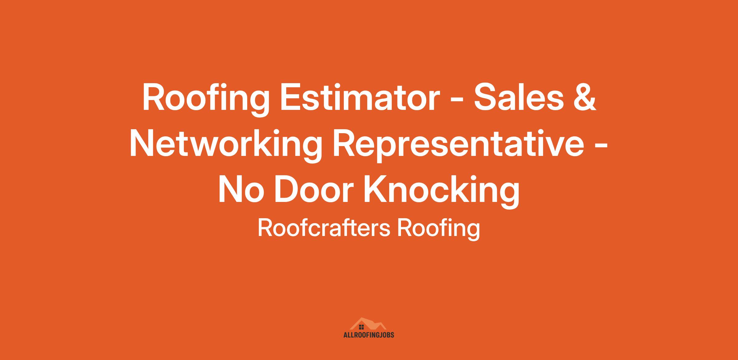 Roofing Estimator - Sales & Networking Representative - No Door Knocking
