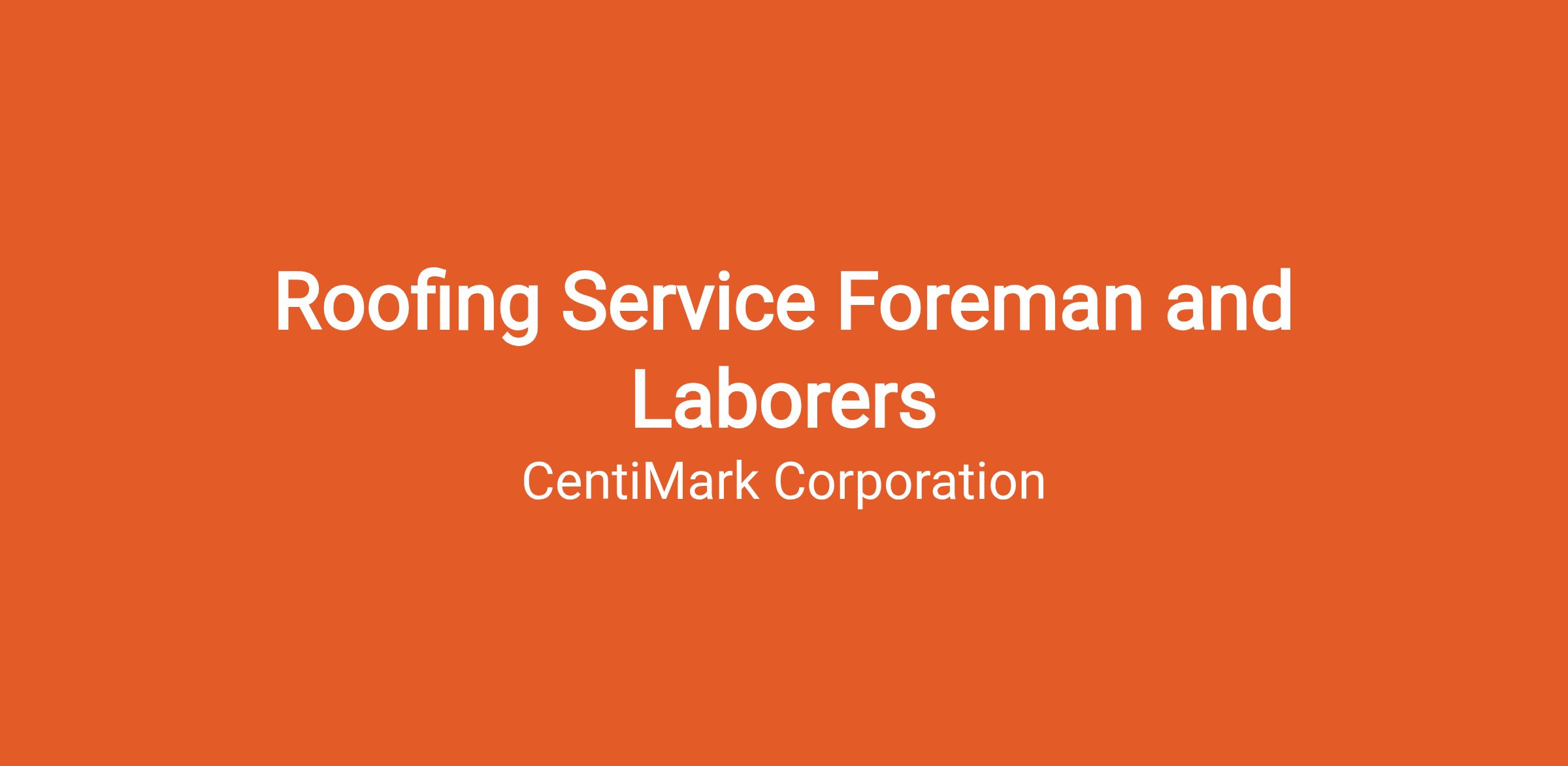 CentiMark Corporation is the national leader in the commercial/industrial roofing industry and we have exceptional opportunities for an experienced Roofing Service Foreman and Service Laborers in the greater Madison area.