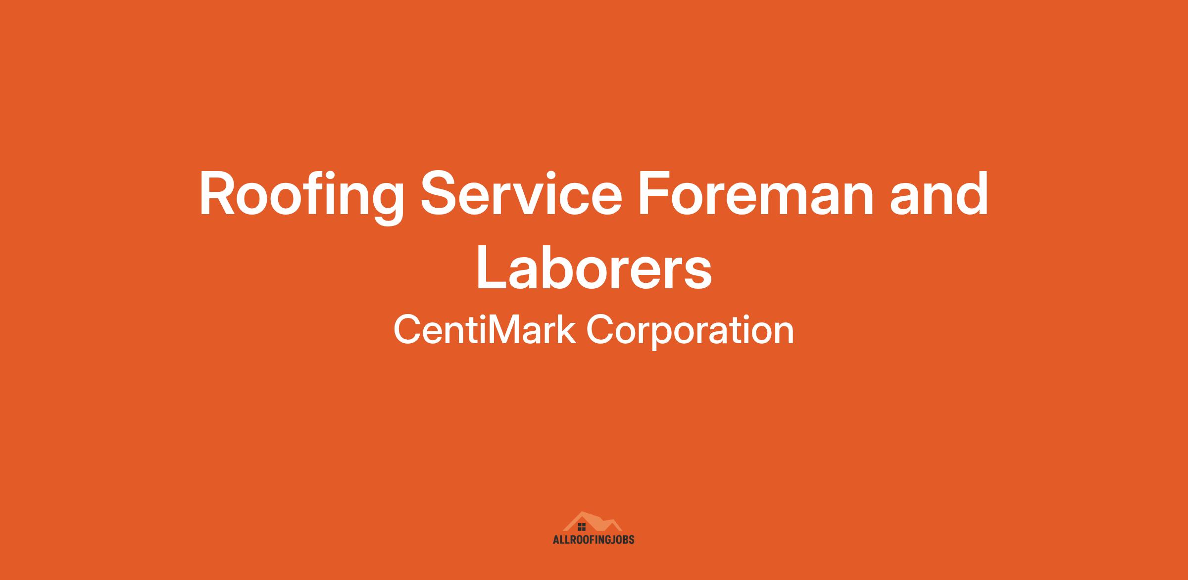 CentiMark Corporation is the national leader in the commercial/industrial roofing industry and we have exceptional opportunities for an experienced Roofing Service Foreman and Service Laborers in the greater Huntsville area.